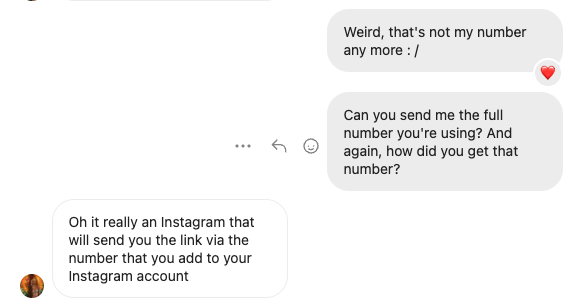 What I got was an SMS text message with a link. This caught me offguard. Why was this going to my text message? Although we were friends on instagram, we have been disconnected long enough that there was no way they had my number.