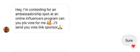 Yup, that's it. Within minutes the bad actor is able to hijack your account using the Instagram password reset option all under the guise of helping a friend grow their social influencer program.
