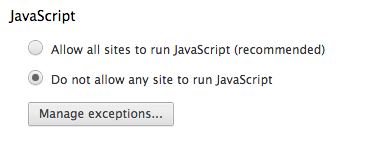 I really like the way Chrome allows you to quickly, and easily configure your JavaScript settings. The easiest way is to type this into your URL in the browser: