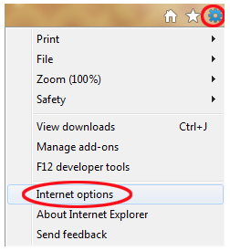 Navigate to Internet Options, you'll do this by opening your browser and clicking on File: