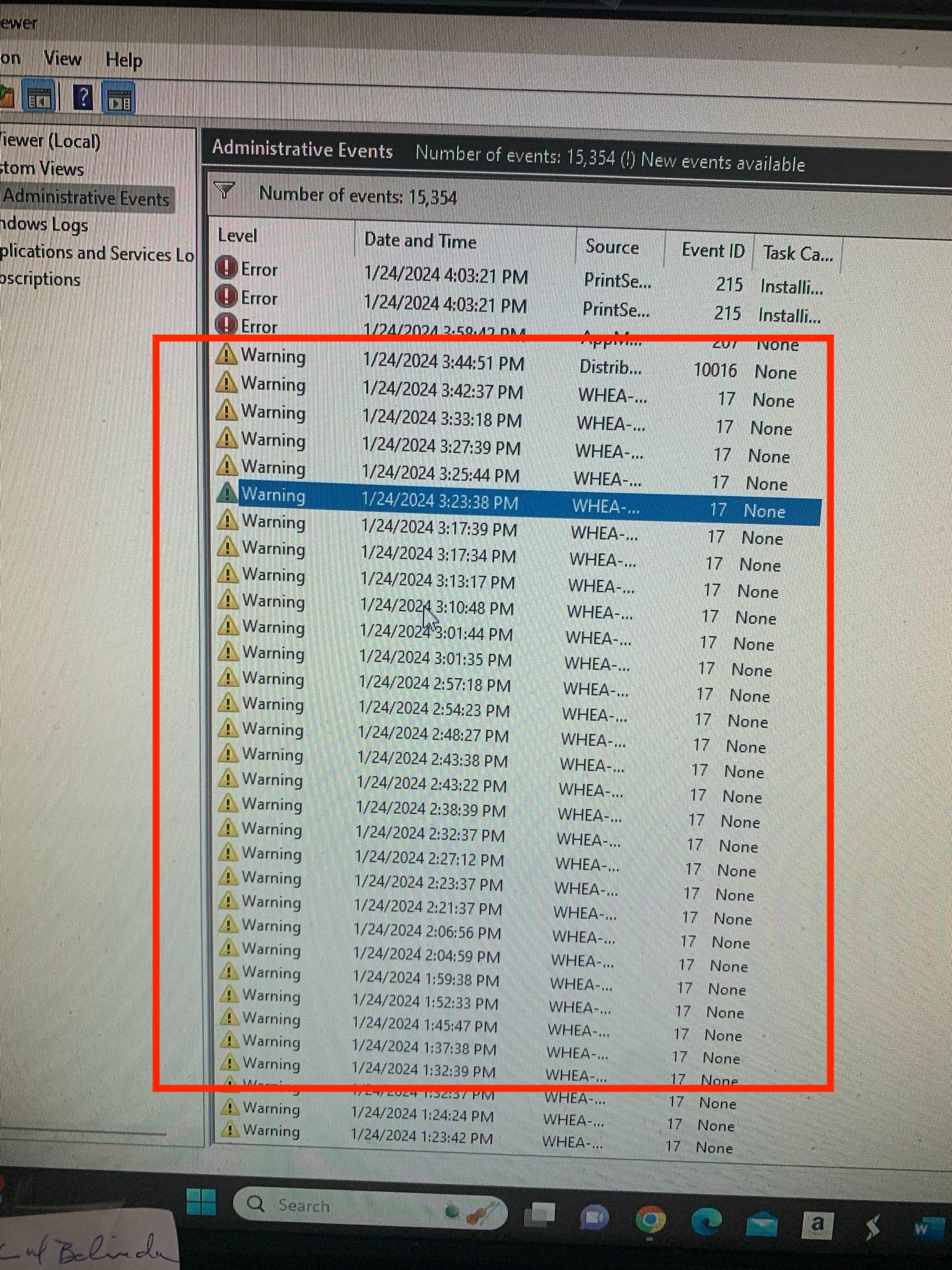 Event Viewer Warnings