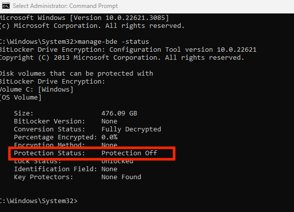 They open command prompt and run "manage-bde -status"